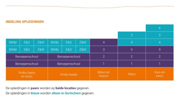 De locatie Gorinchem is onze hoofdlocatie, hier zijn alle opleidingen en alle vormen van leerlingenzorg aanwezig.
